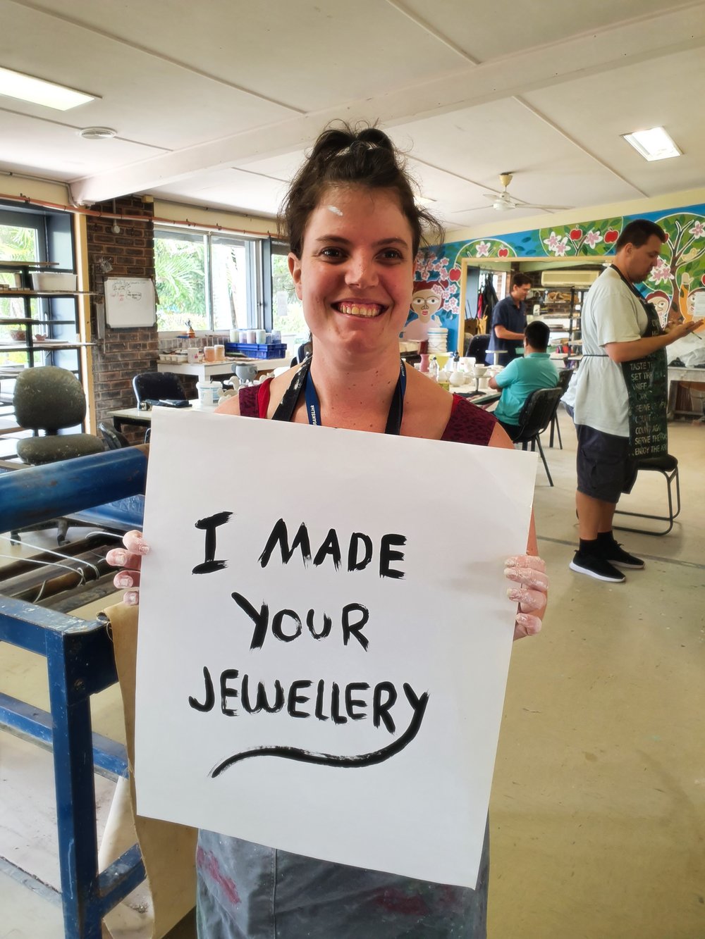 "As an allied health worker, working in the disability sector, I think this initiative is a wonderful way to provide individuals with creative work and I hope they feel proud knowing that others are wearing something they've contributed to, with pride."